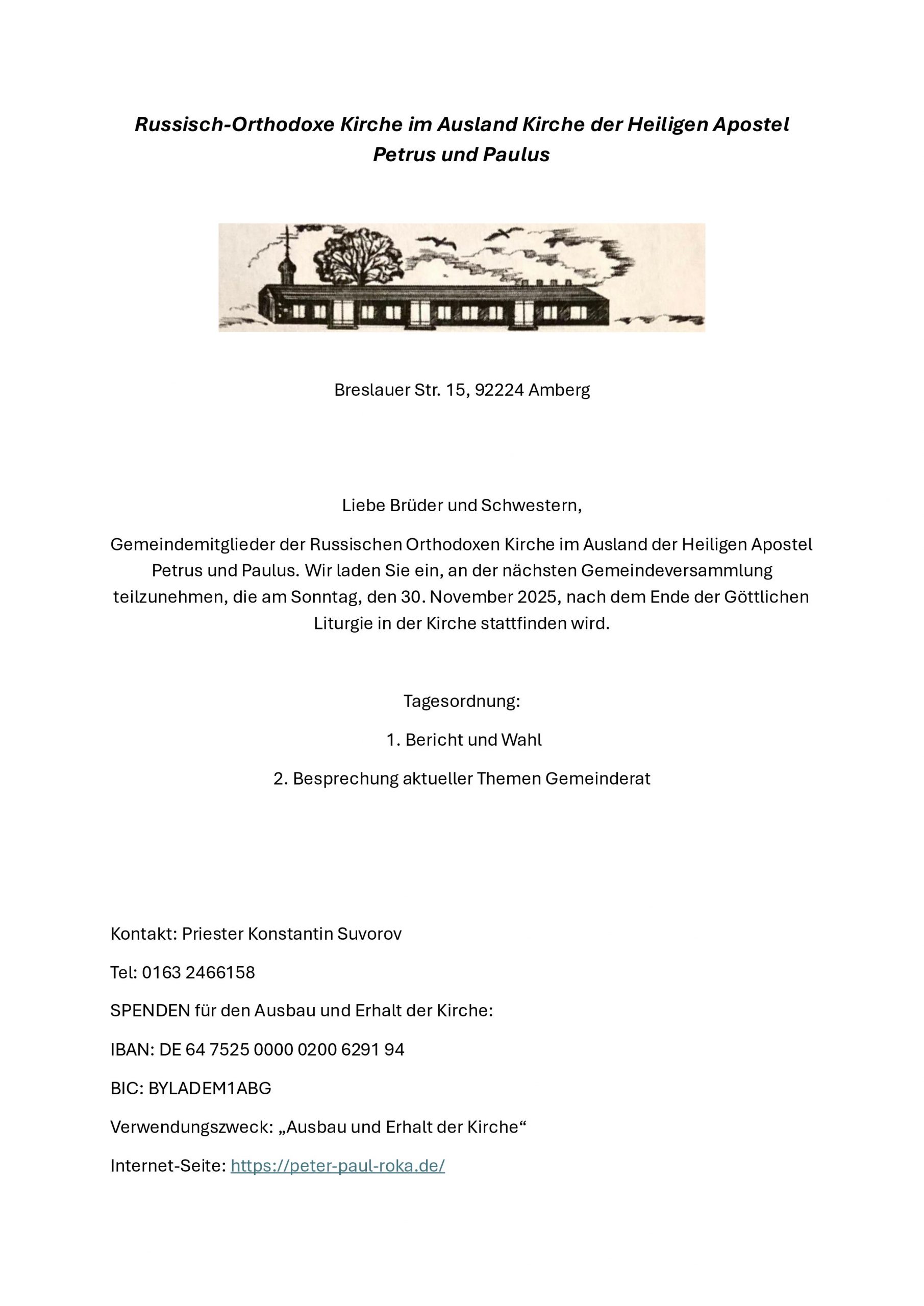 - Nach der Liturgie findet die Panikhida des Heiligen Demetrius statt.