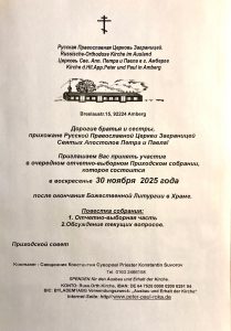 30.11.2025 Приглашение на отчетно-выборное Приходское собрание